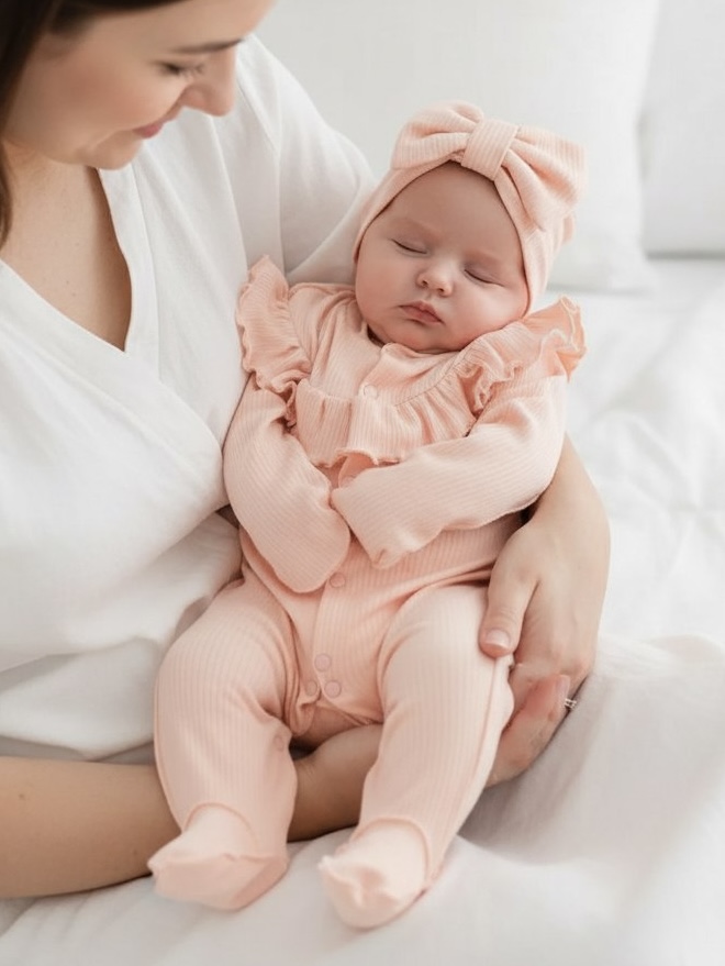 Внимание! Кнопки у нового изделя сначала тугие, не нужно их резко дергать. Сначала их нужно несколько раз расстегнуть и застегнуть, чтобы разработать. Комбинезон с тюрбаном на выписку для девочки: стиль, комфорт и безопасность Представляем вашему вниманию идеальный выбор для вашего малыша — нарядный комбинезон на выписку из мягкого трикотажа лапша. Эта модель станет прекрасным дополнением к гардеробу вашего ребёнка, обеспечивая ему комфорт и уют с первых дней жизни. Удобство и практичность. Хлопковый слип для новорожденного имеет удобный крой с застёжкой на кнопки, что обеспечивает лёгкость при переодевании малыша. Швы наружные, Эргономичное лекало гарантирует свободу движений, а экологически чистая ткань из трикотажа — мягкость и нежность к коже ребёнка. Хлопок 100%.. Безопасность и качество. Высокое качество пошива гарантирует долговечность изделия и сохранение его внешнего вида на протяжении долгого времени. Мягкая ткань не раздражает нежную кожу малыша, обеспечивая комфорт во время сна и бодрствования. Сезонность. Комбинезон для новорожденных всесезонный, что делает его идеальным выбором для любого времени года. Вы можете быть уверены, что вашему малышу будет тепло и уютно в любую погоду. Ткань, из которой изготовлен костюм для новорожденного, устойчива к износу, что гарантирует сохранение красивого внешнего вида на долгое время. Это означает, что вы сможете наслаждаться красотой и удобством комбинезона, не беспокоясь о его состоянии. Важно знать! Все нательные детские вещи (1 слой) являются невозвратными. Это означает, что если комбинезон вам не подошёл, вы можете отказаться от него на пункте выдачи. Если же вы забрали товар домой, вернуть его уже нельзя. Стирка на деликатном режиме до 30С. Отжим не более 400 оборотов.