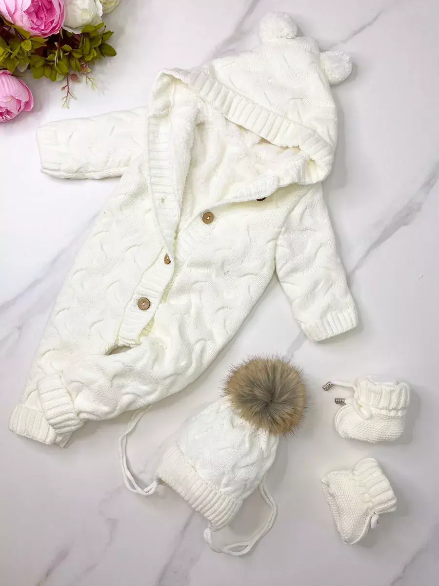 Вязаный утеплённый комплект для новорожденного из 3 предметов — идеальный выбор для холодных дней!