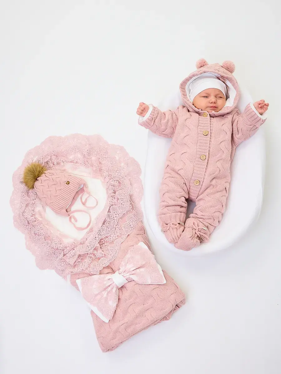 Комплект на выписку новорожденного вязаный состоит из 8 предметов. Конверт на выписку осень весна зима : Вязаный плед на выписку 120х100 см утеплен эко-мехом (велсофт). Комплект на выписку новорожденного осень весна имеет пояс бант на резинке, который надежно фиксирует плед при этом не пережимая тело малыша. Вязаная шапочка 40 размер на завязках с помпоном так же входит в конверт на выписку новорожденного. Вязаные пинетки для малыша как и весь зимний конверт на выписку изготовлены из турецкой премиум пряжи. Комбинезон для малыша вязаный теплый с капюшоном сплетен из мягчайшей пряжи и утеплен полностью эко-мехом. Нарядный комбинезон из 100% хлопка 56 размера. Милая шапочка на голову в комплекте. Комплект на выписку новорожденного зима с конвертом пригодится и для дальнейших прогулок в коляске. Плед для малыша вязаный- это выбор современных родителей. Конверт одеяло на выписку-это комфорт и удобство для новорожденного малыша. Конверт для новорожденного рассчитан на температуру от -10С до +15С. Вязаный комплект идеально подходит на холодную осеннюю, зимнюю и прохладную весеннюю выписку. . Конверты на выписку весна смотрите точное описание и комплектации на фото! Вязаный комплект для новорожденных очень качественный и практичный.Одеяло конверт на выписку еще долго будет одним из любимых предметом малыша. Вязаный конверт очень мягкий и теплый. Комплект на выписку новорожденного зима сертифицирован. Комплекты на выписку для новорожденных имеют большой ассортимент в нашем магазине. Комплект на выписку вязаный окутывает теплом с первых прикосновений. Конверт на выписку осень обязательно понравится вам и вашему малышу. Идеально подойдет плед для новорожденных в коляску или кроватку.