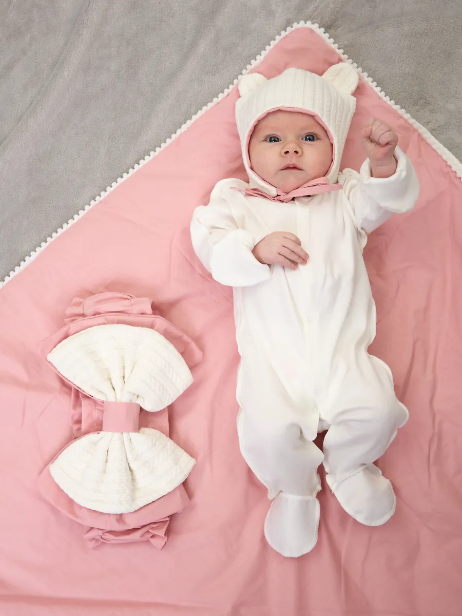 Представляем вам очаровательный конверт на выписку для новорожденных , который станет идеальным выбором для встречи малыша из роддома. Этот комплект, состоящий из конверта-одеяла, пояса-банта и милого чепчика с ушками, создан, чтобы обеспечить максимальный комфорт и уют вашему крохе. Сшит из дышащего пике (хлопок -100%) и с хлопковой подкладкой, конверт прекрасно подойдет для демисезонного периода, сохраняя оптимальную температуру от +5С до +20С. Утепление из синтепона обеспечит малышу тепло и защиту от прохладного воздуха. Конверт легко трансформируется в уютное одеяло, а пояс на резинке позволит надежно зафиксировать его на малыше. Стильный дизайн без рисунка в нежных оттенках молочного, идеально подойдет как для мальчика, так и для девочки. Этот конверт станет прекрасным дополнением к любому наряду на выписку и подарит вашему малышу ощущение тепла и заботы.