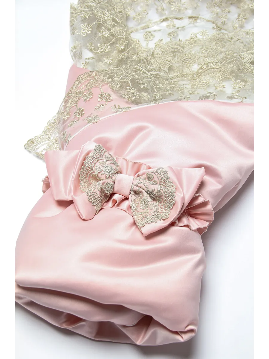 Конверт на выписку для новорожденного из нежной тафты. Уголок с кружевом съемный.