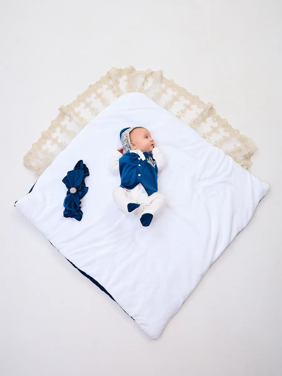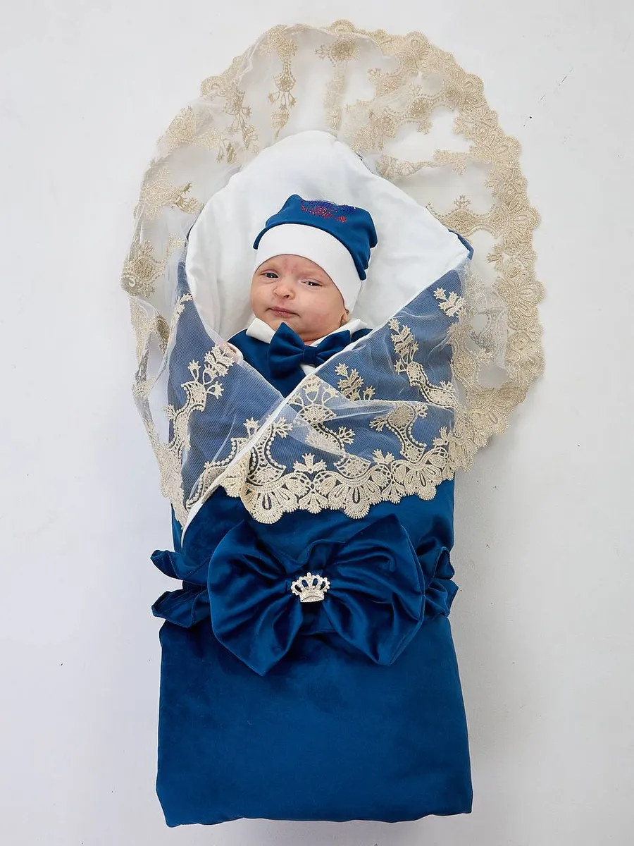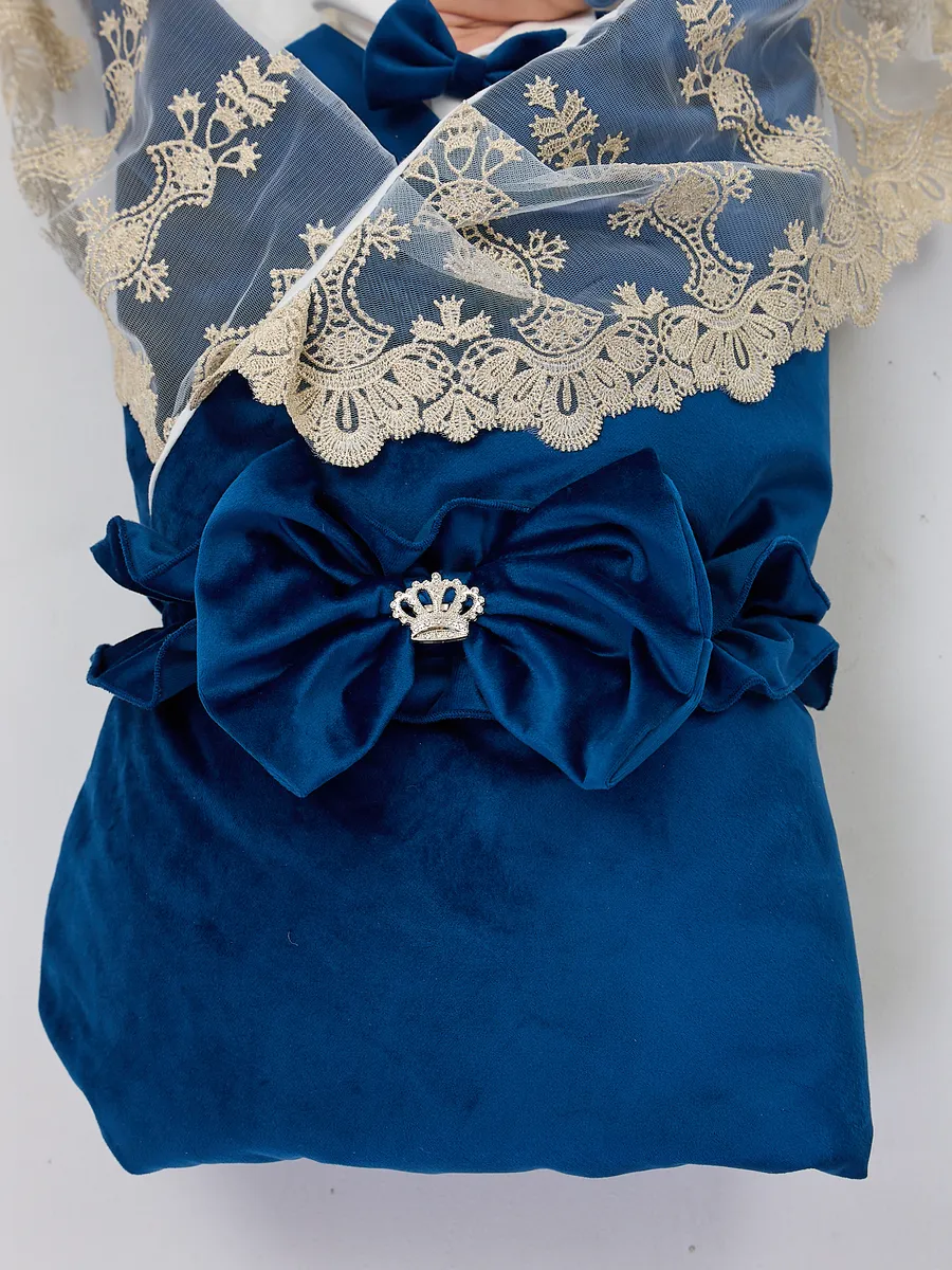 Элегантный конверт для выписки новорожденного из бархатной и хлопковой ткани. Идеален для создания запоминающегося образа в важный момент. Поставляется без костюма. Удобный и стильный, украшен изысканной кружевной отделкой и декоративным бантом с короной. Подходит для использования в холодное время года. Отличный выбор для родителей, ценящих комфорт и красоту.