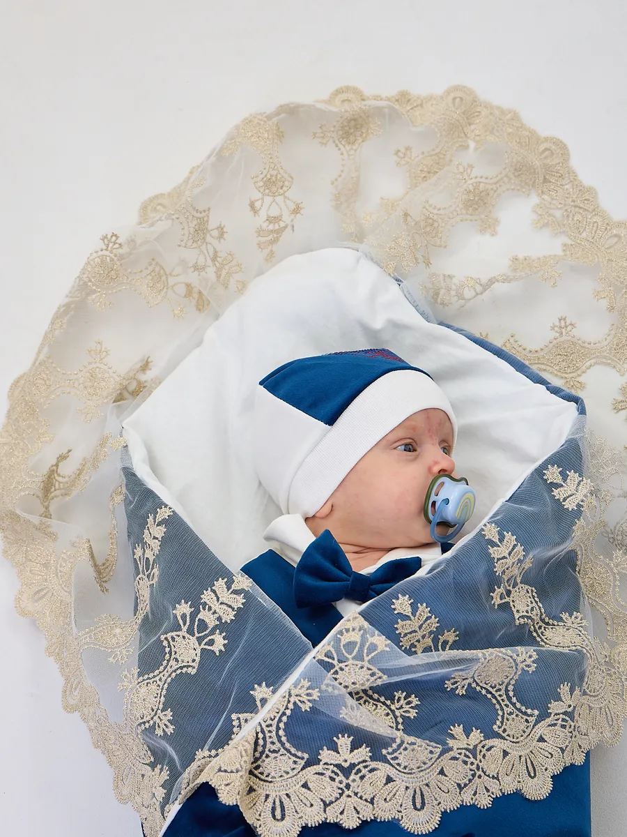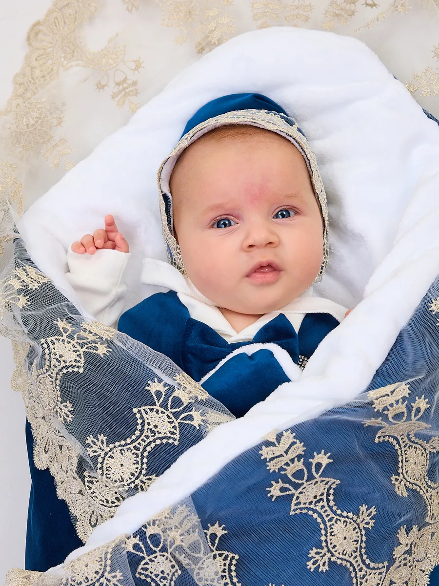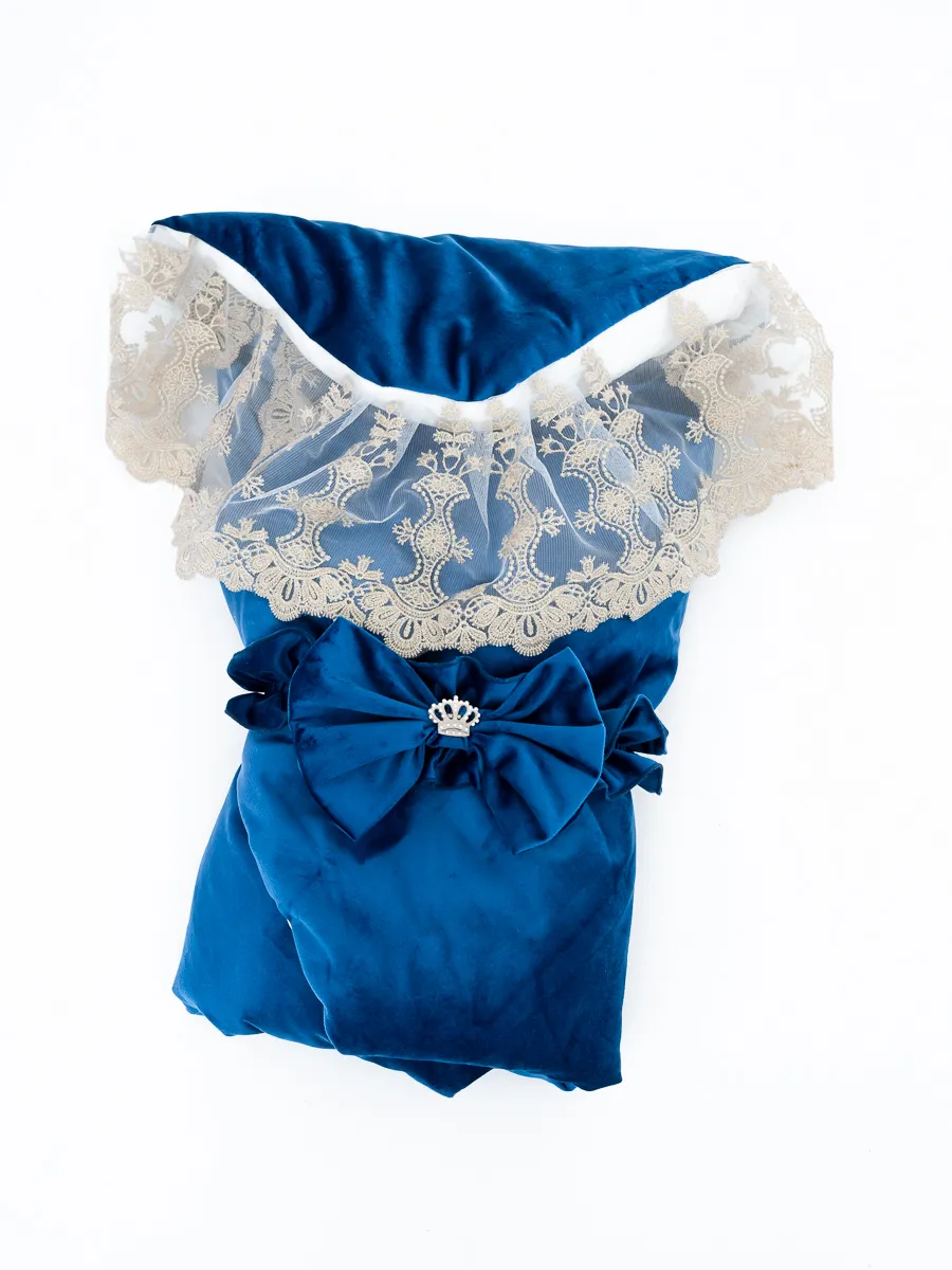 Элегантный конверт для выписки новорожденного из бархатной и хлопковой ткани. Идеален для создания запоминающегося образа в важный момент. Поставляется без костюма. Удобный и стильный, украшен изысканной кружевной отделкой и декоративным бантом с короной. Подходит для использования в холодное время года. Отличный выбор для родителей, ценящих комфорт и красоту.