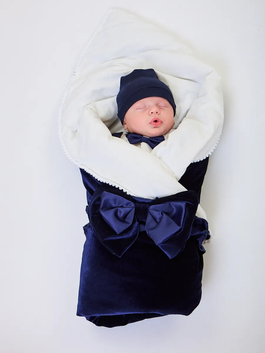 Элегантный конверт для выписки новорожденного из бархатной и хлопковой ткани. Идеален для создания запоминающегося образа в важный момент. Поставляется без костюма. Удобный и стильный, украшен декоративным бантом на резинке. Подходит для использования в холодное время года. Отличный выбор для родителей, ценящих комфорт и красоту.