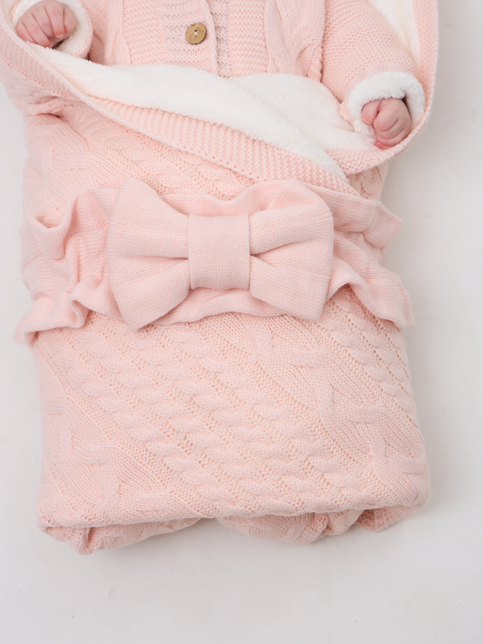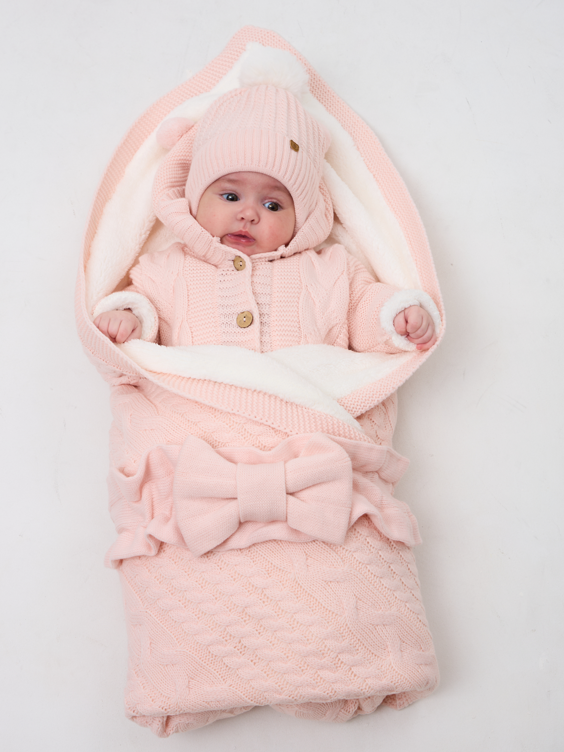 Комбинезон полностью утеплён экомехом и связан из мягчайшей пряжи. Конверт-одеяло на выписку — это комфорт и удобство для вашего малыша.