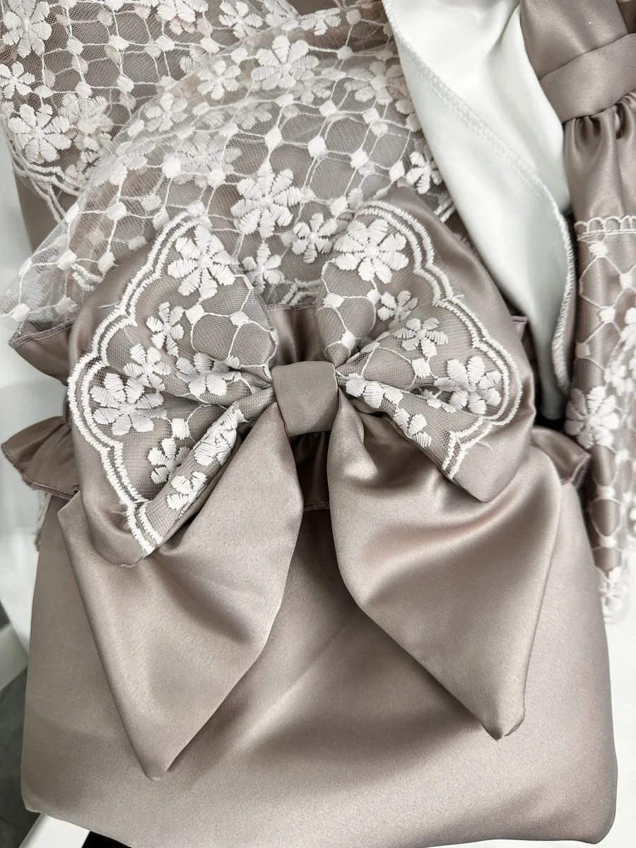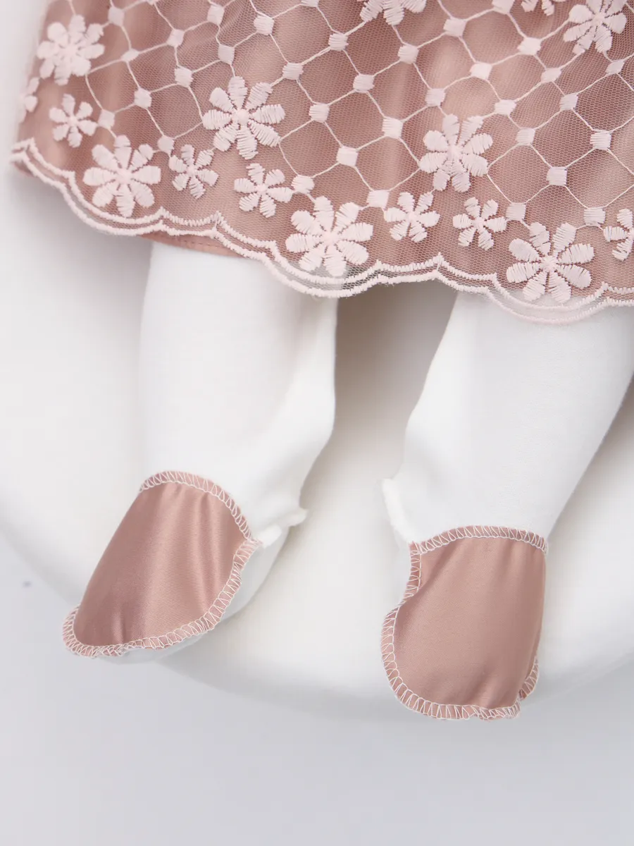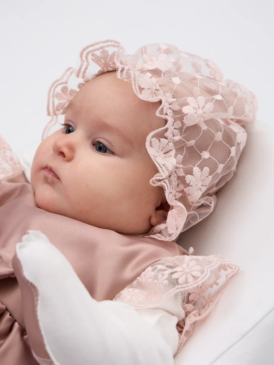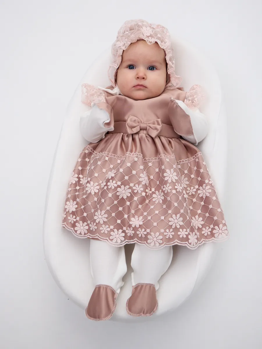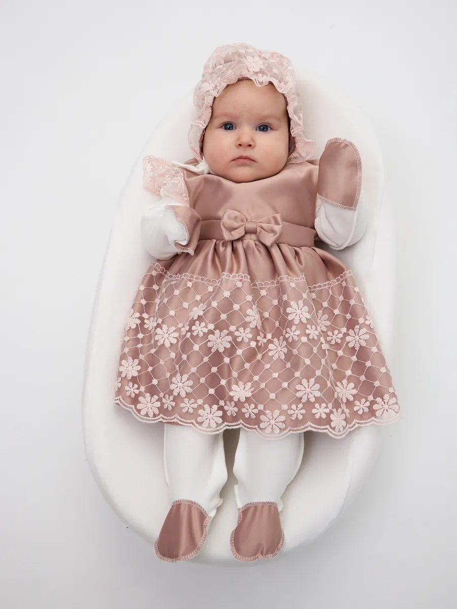 Конверт на выписку весна это прекрасный выбор для встречи новорожденной девочки из роддома. Этот комплект, выполненный в нежной пудровой расцветке с очаровательным кружевом в цветочки, создаст уютную и стильную атмосферу для первого выхода малыша на улицу. Конверт для девочки из коллекции весна 2026 изготовлен из дышащего материала с утеплителем холлофайбер, что обеспечивает комфортную температуру для крохи в диапазоне от +5С до +20С. Ветрозащитная конструкция и возможность полного расстегивания конверта гарантируют удобство использования как в роддоме, так и дома. Комплект на выписку включает в себя не только конверт, но и милое платье, удобный комбинезон и мягкий чепчик, создавая полный образ для маленькой принцессы. Конверт фиксируется на пояс бант с резинкой, что обеспечивает надежную фиксацию и удобство при надевании. Мягкая подкладка из хлопка приятна к нежной коже малыша. Декоративное кружево добавляет конверту на выписку особую изящность и шарм. После использования конверт можно легко постирать в деликатном режиме при 30С без отжима, сохраняя его первоначальный вид.