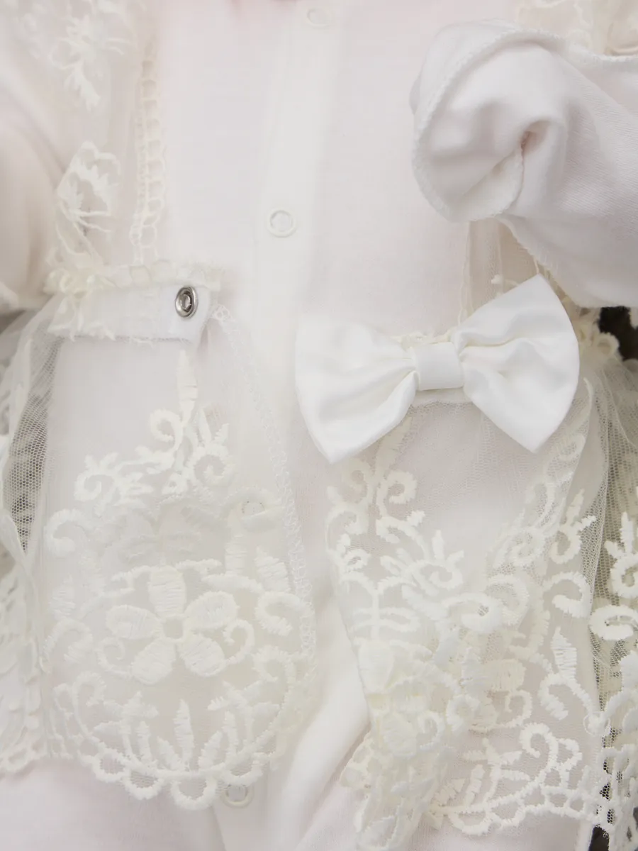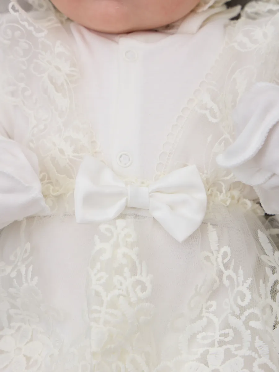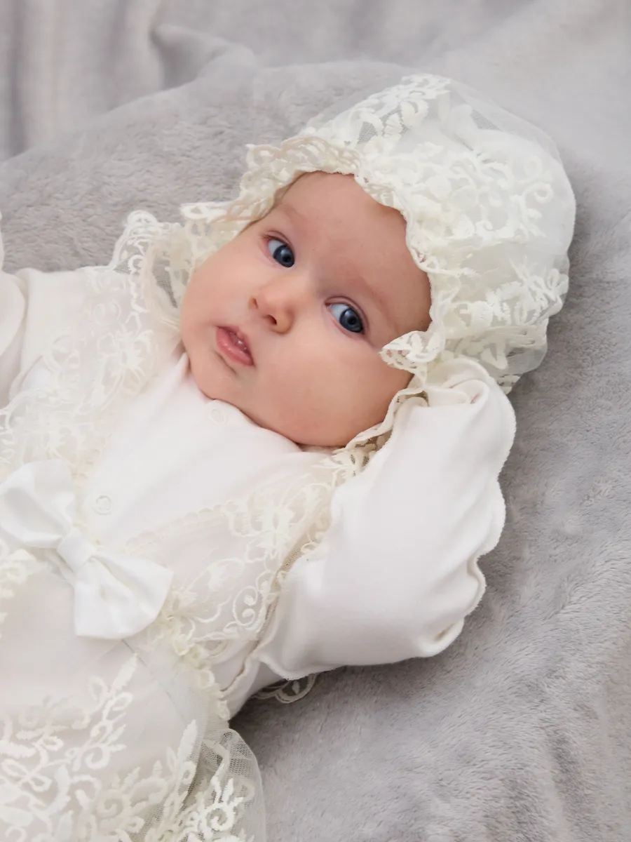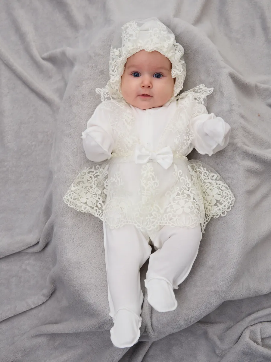 Уникальный комплект на выписку весна-осень – идеальное решение для первых дней жизни вашего малыша вне роддома. Он разработан с заботой о максимальном комфорте и безопасности в прохладное время года. Включает в себя все необходимые элементы: конверт-одеяло, пояс бант на резинке, нательный комбинезон, чепчик, и кружевной сарафан. Каждая деталь коллекции продумана до мелочей, чтобы обеспечить тепло, удобство и стильный внешний вид.