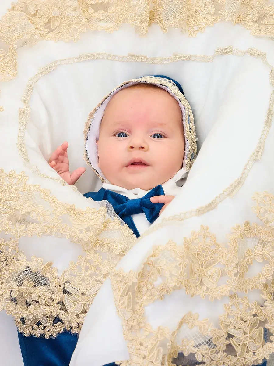 Конверт для новорожденного с шикарным кружевом в 3 ряда и пояс бант на резинке. В дальнейшем можно использоваться как одеяло для малыша. Подклад выполнен из трикотажа (100% хлопок), который обеспечивает комфорт и безопасность для нежной кожи малыша. Снизу комплект застегивается на молнию.