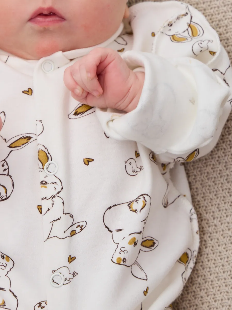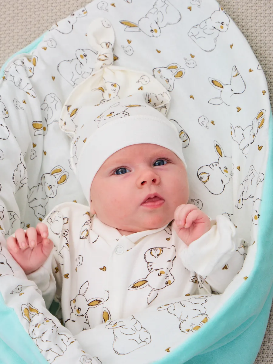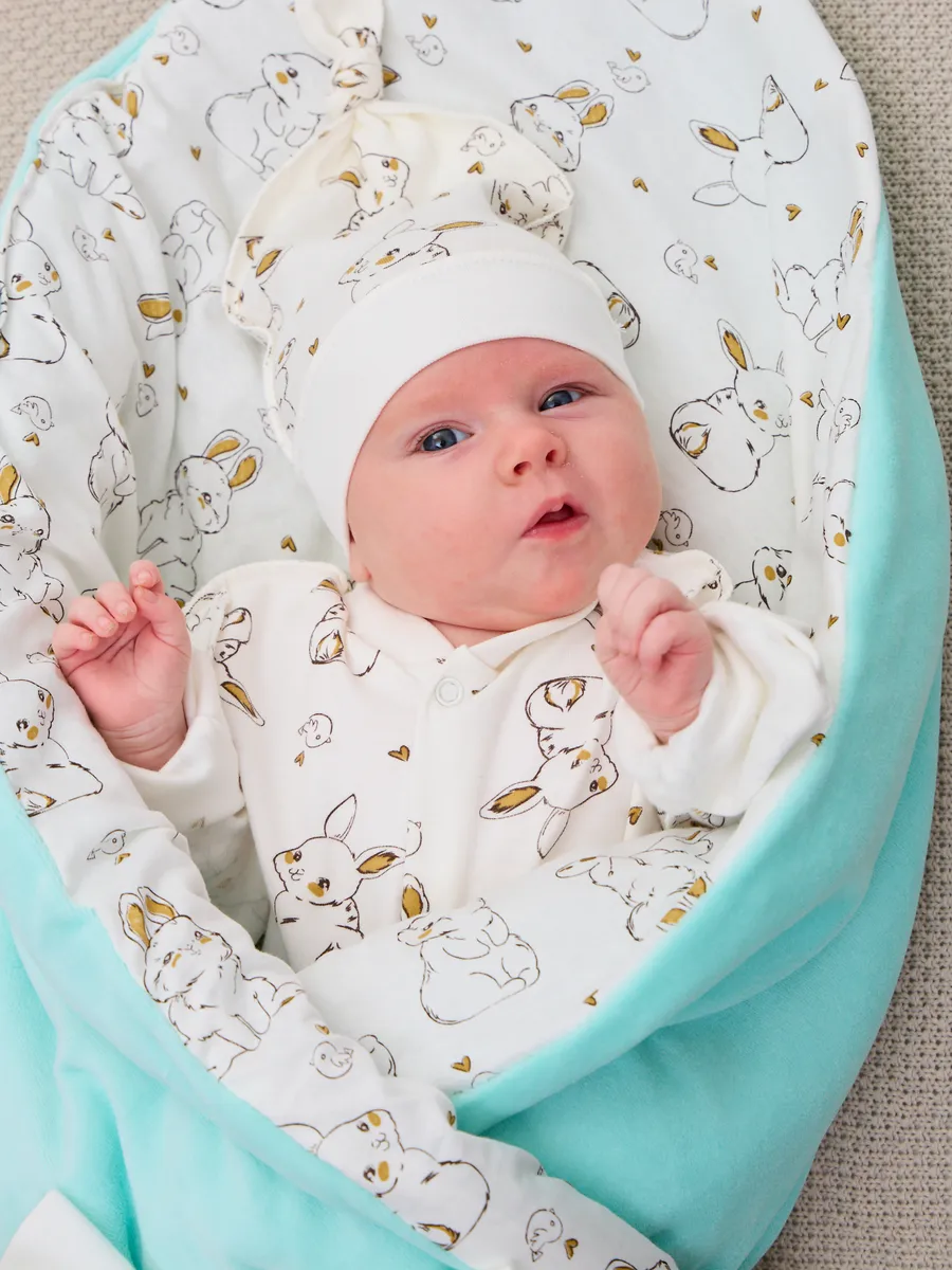 Весенний конверт-одеяло для новорожденного на выписку станет незаменимым помощником для молодых родителей. Это классическое квадратное одеяло, которое можно использовать не только на выписке из роддома, но и в повседневной жизни дома, как плед для малыша. Верх конверта - нежный велюр (производства Турция), а подклад из 100% хлопка. Благодаря своей мягкости и теплоте, конверт-одеяло обеспечит комфорт и уют вашему малышу в первые дни его жизни. Вы можете использовать его в кроватке или коляске, чтобы создать для ребенка ощущение безопасности и защищенности. Этот комплект идеально подходит для новорожденных, так как его размеры и материалы тщательно подобраны с учетом потребностей маленьких детей. Конверт-одеяло легко стирать и ухаживать за ним, что делает его еще более привлекательным для молодых родителей. Хлопковый комбинезон для новорожденного и шапочка с узелком швами наружу. Размер 56. Изготовлен из натуральной хлопковой ткани- интерлок пенье ( трикотаж высшего ачества). Милый принт и очень удобная модель - кнопочки застегиваются по всей длине комбинезона. Вы нас очень поддержите оставив свой отзыв после покупки! Благодарим за выбор и доверие! В нашем беби-шопе большой ассортимент конвертов на выписку и одежды для новорожденных.