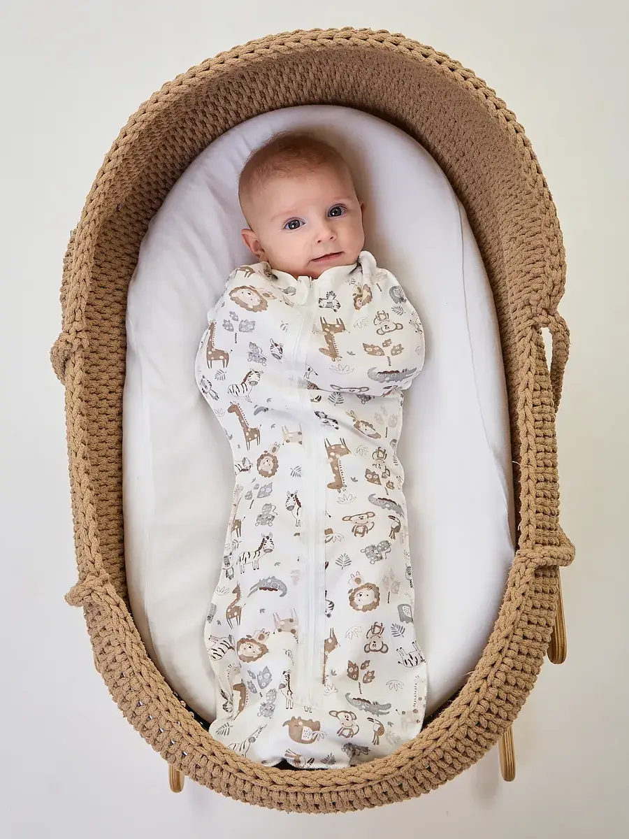 Представляем вашему вниманию пелёнку кокон на молнии для новорождённого, размер 56-62 см. Этот практичный и стильный аксессуар станет незаменимым помощником для родителей. Изготовленная из 100% хлопка интерлока пенье, пелёнка кокон для новорожденных обеспечивает комфорт и безопасность для нежной кожи малыша. Натуральный материал позволяет коже дышать, не вызывает раздражений и аллергических реакций. Особенность пелёнки кокона удобные швы наружу, которые не натирают кожу ребёнка и не создают дискомфорта. Благодаря этому ваш малыш будет чувствовать себя комфортно и спокойно. Размер 62 см идеально подходит для новорождённых и позволяет использовать кокон в первые месяцы жизни ребёнка. Она обеспечивает свободу движений и удобство при смене подгузника или переодевании. Выбирая нашу пелёнку, вы получаете качественный и надёжный продукт, который будет радовать вас и вашего малыша. Подарите своему ребёнку заботу и комфорт. Благодарим вас за выбор нашего магазина! Если у вас есть вопросы или нужна помощь, то Вы можете обратиться к нам в чат и мы всегда рады помочь. Оставьте отзыв после покупки — это поможет нам стать ещё лучше!