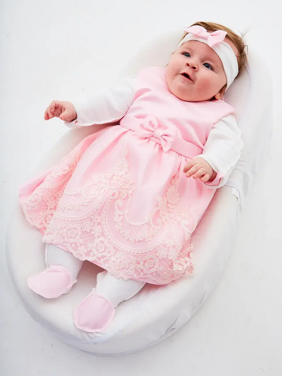 Платье для новорожденных девочек. Платье на выписку из роддома и торжество: идеальный выбор для самых маленьких принцесс. Ищете идеальный наряд для вашей малышки? Тогда обратите внимание на наше платье нарядное для девочки. Оно включает в себя всё необходимое для создания неповторимого образа: Нарядное платье сарафан для новорождённых девочек. Застёгивается сзади на молнию, идеально подходит для выписки, крестин и других праздничных мероприятий. Слип для новорожденных швы наружу из нежного интерлока. Выполнен на кнопках, легко надевается и снимается. Комбинезон для новорожденных деально подойдёт для повседневного использования или как нижний слой под платье. Трикотажная повязка на голову с нарядным бантом. Дополнит образ и сделает его ещё более праздничным. Почему стоит выбрать именно наш комплект? Удобство и практичность. Платье для девочки легко надевать и снимать, а слип для новорожденных можно носить отдельно. Высокое качество. Все изделия выполнены из материалов, безопасных для нежной кожи малыша. Стильный дизайн. Яркие цвета и нарядные элементы сделают образ вашей малышки неповторимым. Универсальность. Подойдёт для выписки из роддома, торжественных мероприятий или фотосессий. Отзывы наших клиентов — лучшая награда для нас! Мы будем очень благодарны, если вы оставите свой отзыв после покупки. Ваше мнение поможет нам стать ещё лучше. Благодарим вас за выбор нашего комплекта и доверие!
