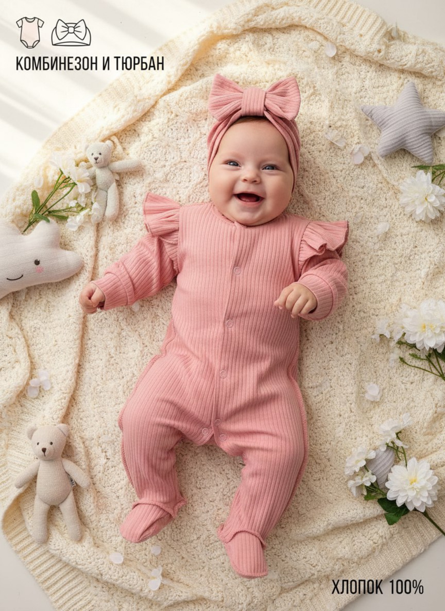 Хлопковый нательный комбинезон выполнен в стильной фактуре рубчик. Идеальный выбор для маленьких модниц и их заботливых родителей, которые ценят комфорт, качество и универсальность одежды. Мы заботимся о своих новорожденных клиентах и улучшили модель. Прочные кнопки позволяют переодевать малыша не раздевая его.