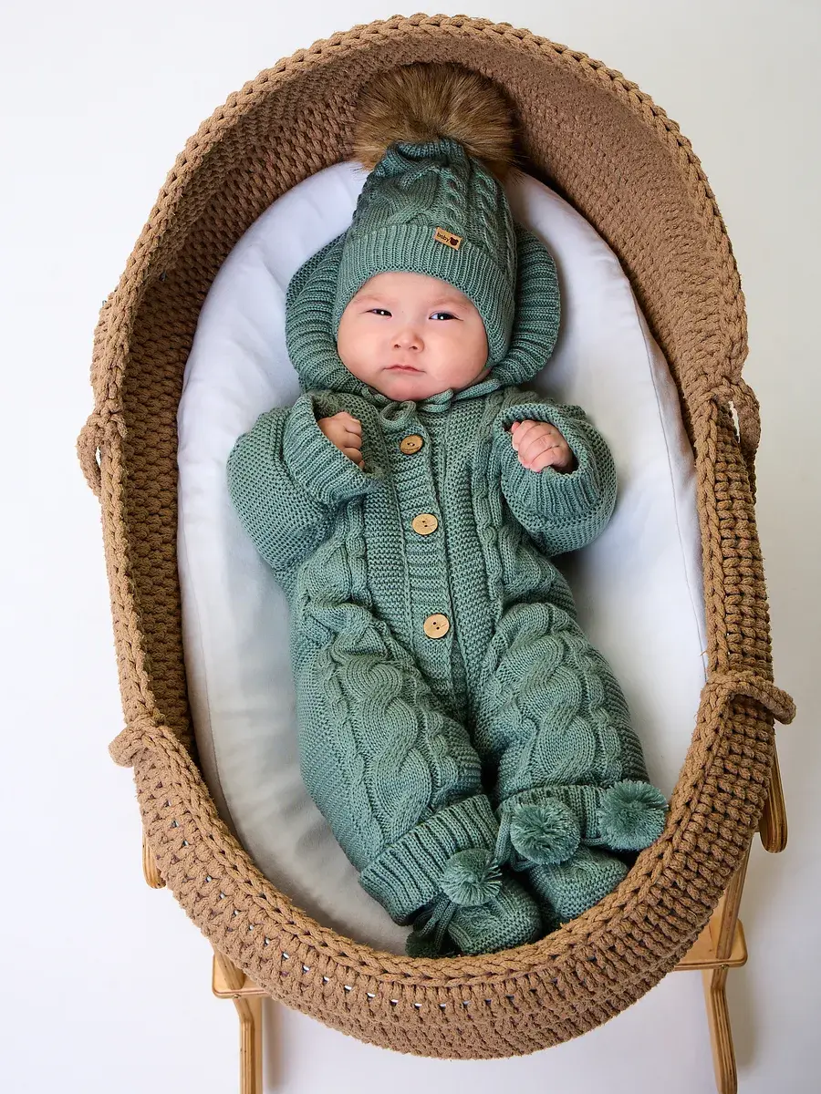 Представляем вам идеальный комплект на выписку новорожденного вязаный набор из 5 предметов. Он включает в себя самые необходимые вещи для первых дней жизни малыша: плед, пояс, шапочку, пинетки и тёплый комбинезон с капюшоном. Конверт на выписку состоит из вязаного пледа размером 120x80 см, утеплённого экомехом (велсофт). Он надёжно фиксируется на малыше благодаря поясу-банту на резинке, не пережимая его тело. Также в комплект входит шапочка размером 40 на завязках с милым помпоном. И, конечно же, вязаные пинетки — они изготовлены из турецкой премиум-пряжи, как и весь зимний конверт.
