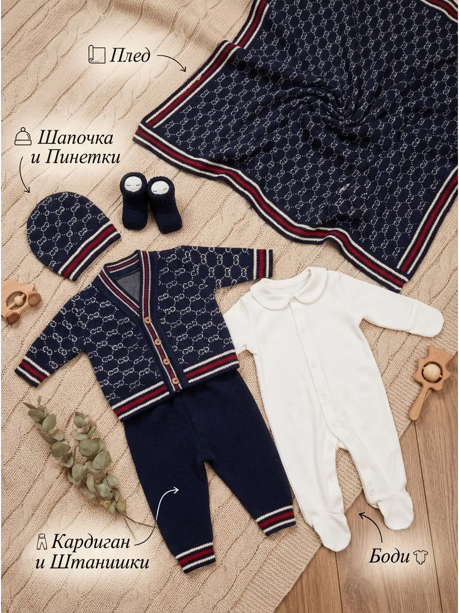 Вязаный комплект для новорожденного сочетает в себя высокое качество материалов, нежные оттенки и уютный дизайн, идеально подходящий для новорожденных. Идеальное сочетание стиля и комфорта для вашего крохи!