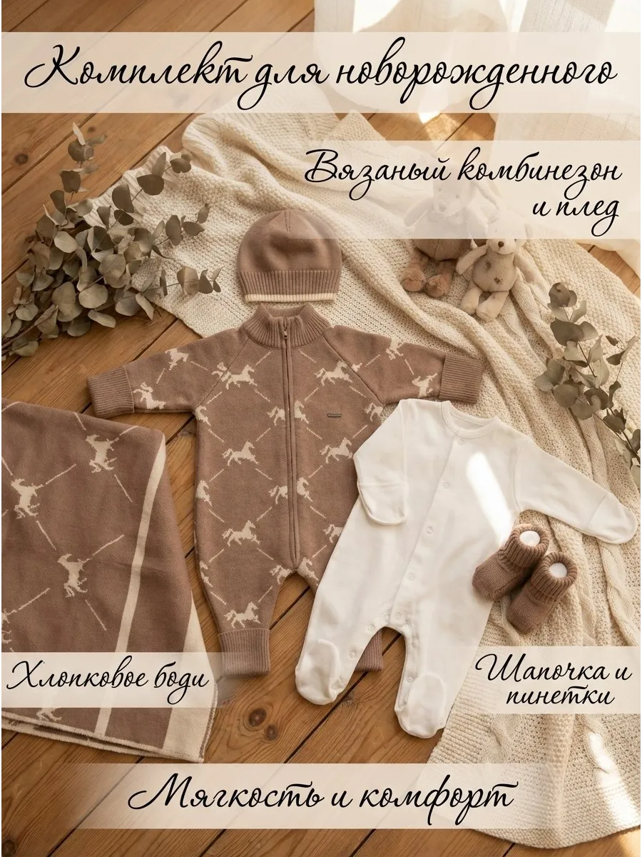 Этот вязаный комплект для новорожденного сочетает в себе высокое качество материалов, нежные оттенки и уютный дизайн, что делает его идеальным на выписку и для повседневного комфорта вашего крохи. Мы продумали каждую деталь, чтобы подарить вашему малышу заботу, тепло и стиль.