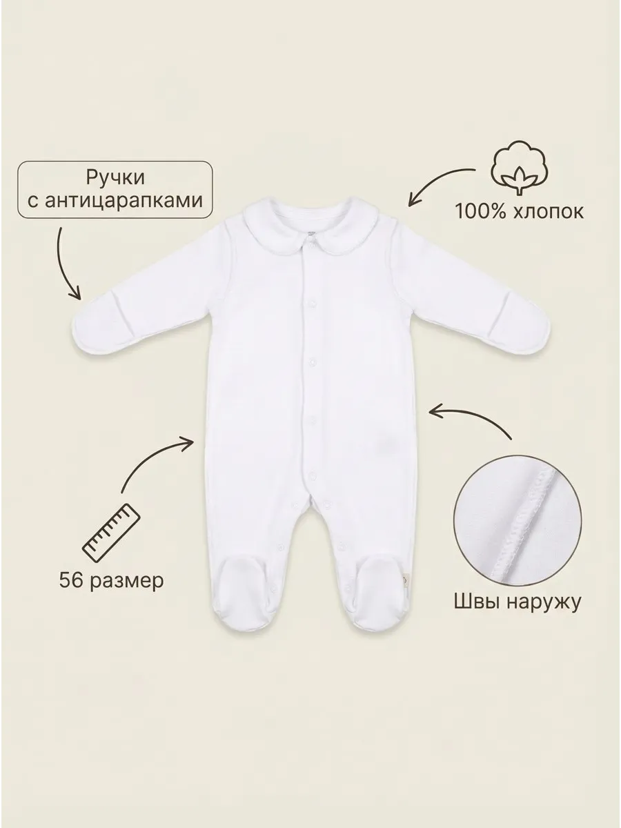 - Хлопковый слип с удобным кроем и застёжкой на кнопках. Обеспечивает максимальный комфорт и лёгкость ухода. Закрытые ручки и швы наружу — для заботы о нежной коже малыша. Размер 56.