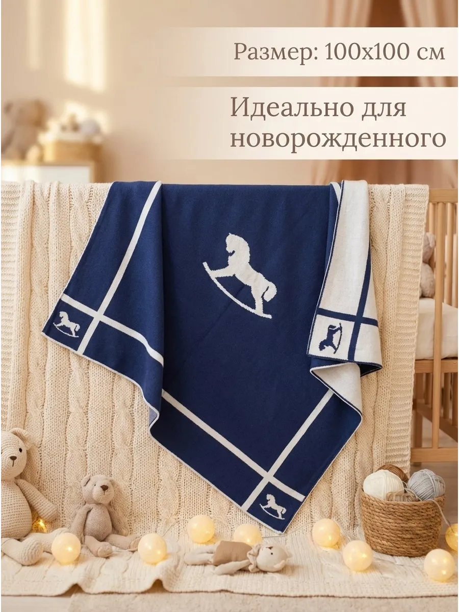 - Нежный и тёплый плед с изящным узором в виде лошадок. Выполнен из премиальной пряжи, которая дарит мягкость, уют и долговечность. Он станет надёжной защитой в прохладные дни. Размер 100х100 см.